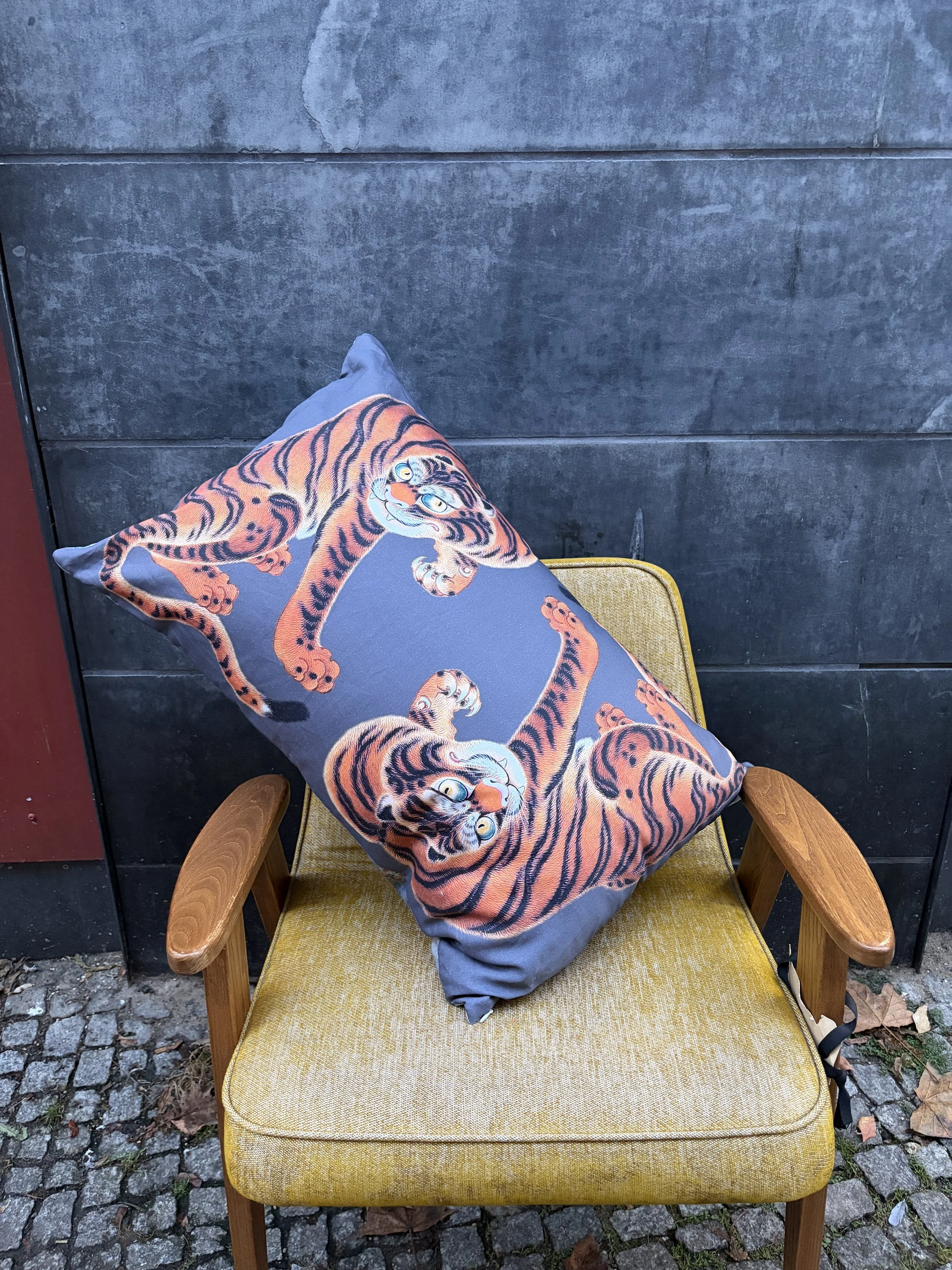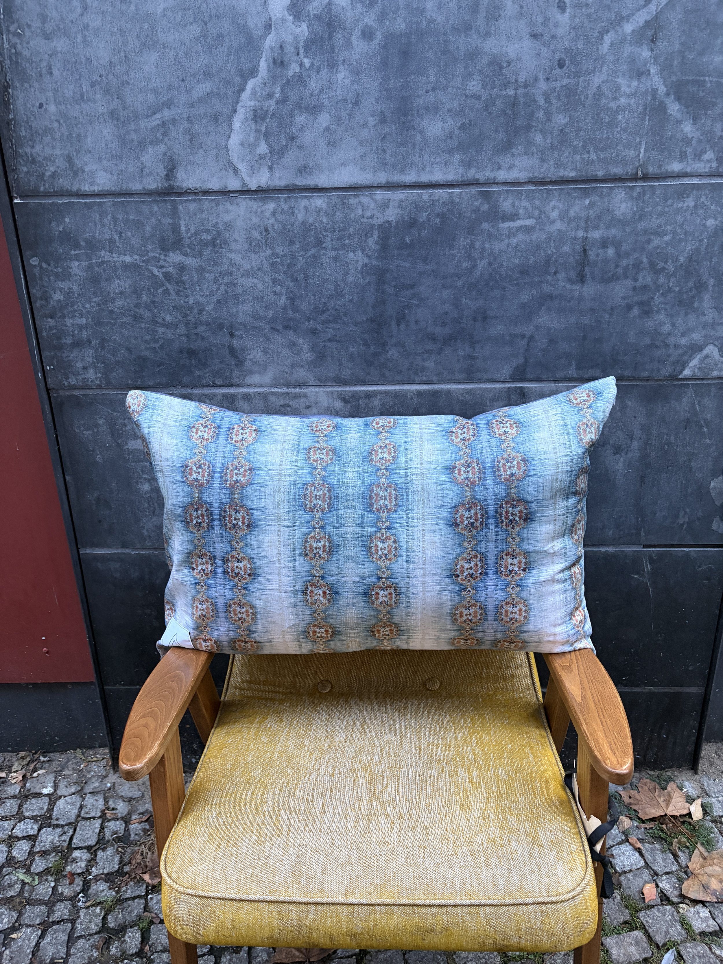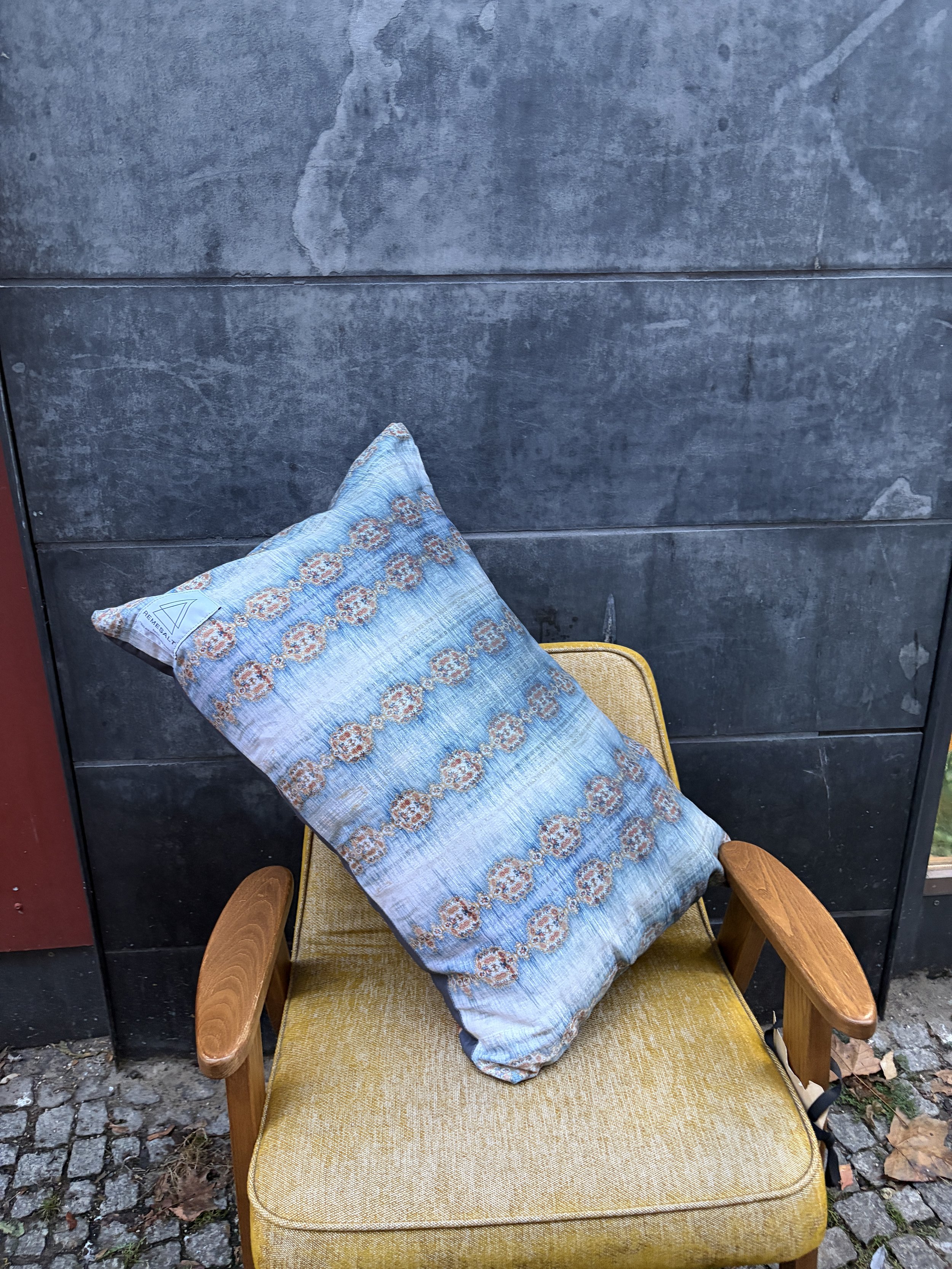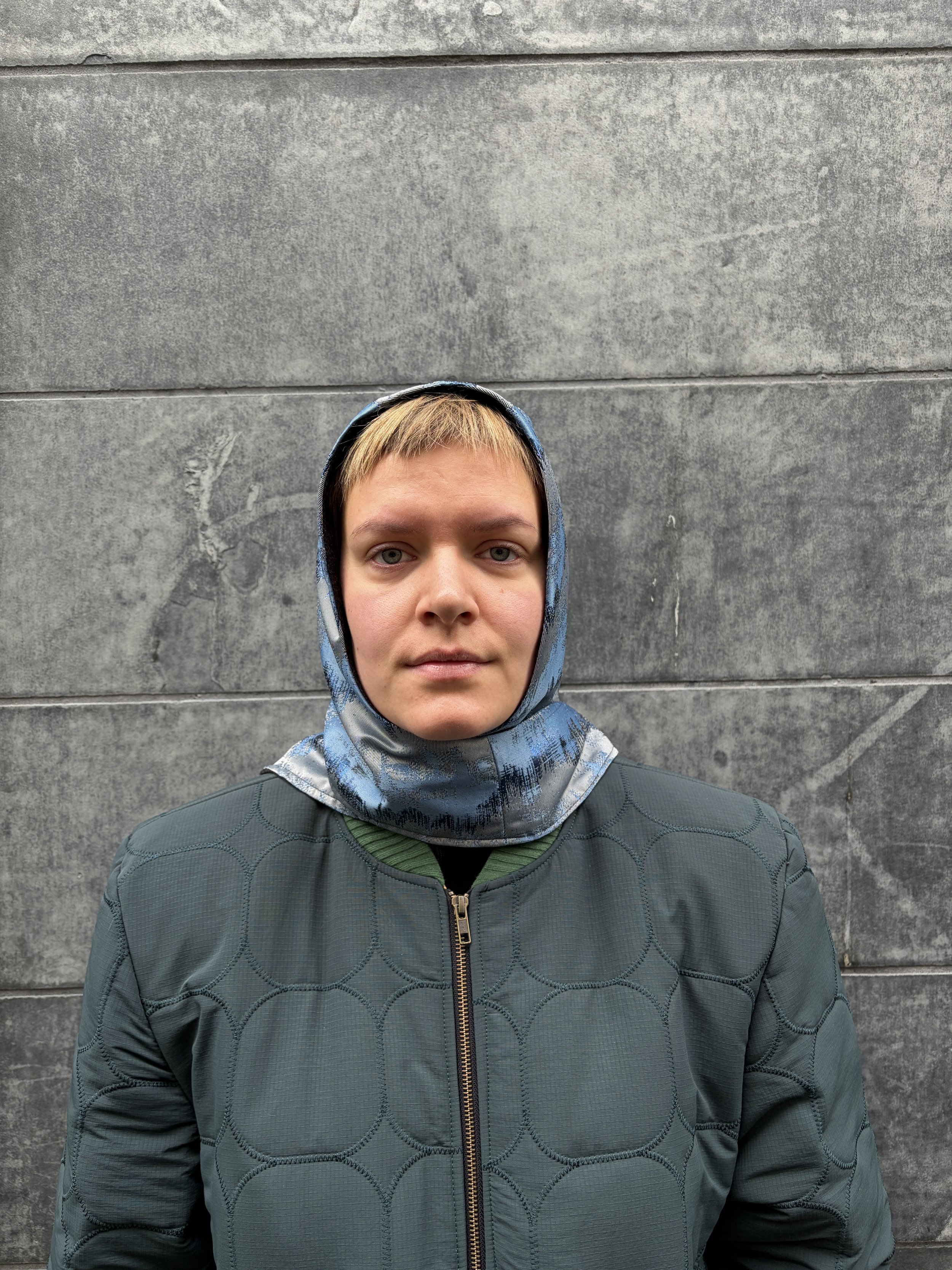 A sculpted hood in brocade and wool—made one by one in Berlin, a small gesture of warmth shaped by hand.