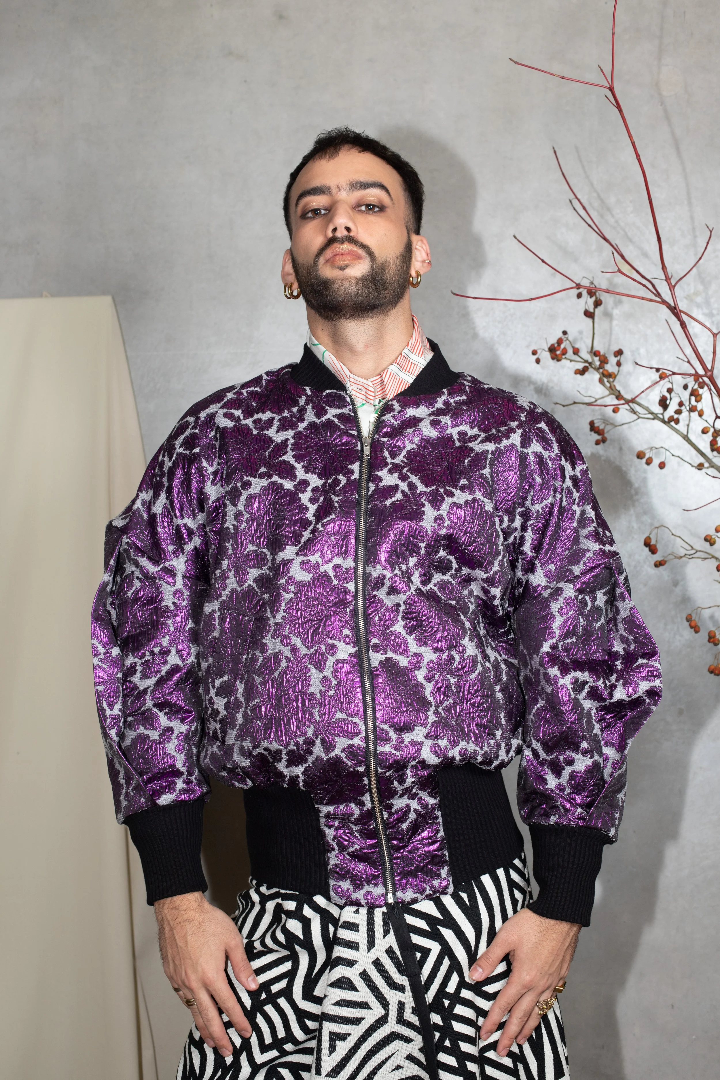 Oversized bomber jacket with presence.